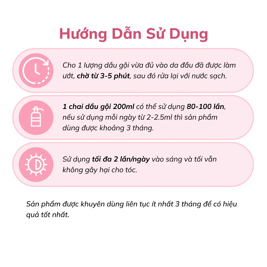 Không sử dụng cho vùng da đầu có vết thương hở. Nếu có kích ứng, hãy ngưng sử dụng và tham khảo tư vấn từ chuyên gia.