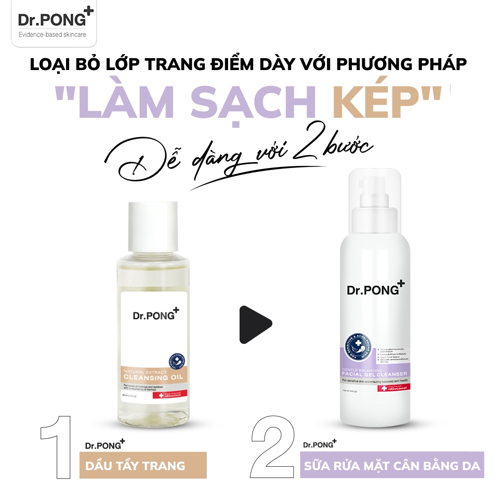 Loại bỏ lớp trang điểm, lớp kem chống nắng và làm dịu da từ các loại dầu tự nhiên như dầu hạt nho, dầu bơ, dầu hạt Jojoba, dầu hạnh nhân. ƯU ĐIỂM NỔI BẬT - Chiết xuất từ dầu tự nhiên không gây tắc nghẽn lỗ chân lông và không gây mụn. - Kết hợp sức mạnh của chiết xuất dầu tự nhiên, không gây bết dính như Quýt/ Hạt nho/ Bơ/ Jojoba & Dầu hạnh nhân ngọt. - Làm sạch sâu một cách nhẹ nhàng, loại bỏ sạch cặn trang điểm (kể cả lớp trang điểm đậm), bụi bẩn, lớp kem chống nắng (kể cả kem chống nắng chống thấm nước). - Dễ dàng loại bỏ son môi và phấn mắt chỉ trong một lần tẩy, tiết kiệm hơn so với dầu tẩy trang thông thường. - Giảm ma sát trên da. - Làm dịu da và bảo vệ hàng rào da. - Duy trì độ ẩm, giúp da không khô căng. - Dễ dàng rửa sạch, không làm tắc nghẽn da. - Công thức 5 không: không steroid, không alcohol, không paraben, không phẩm màu, không hương liệu. HƯỚNG DẪN SỬ DỤNG - Lấy lượng vừa đủ cho vào tay và thoa sản phẩm lên mặt để tẩy trang hoặc làm sạch lớp kem chống nắng/ bụi bẩn mà không cần dùng bông tẩy trang. Để giảm kích ứng chỉ cần chà tay theo vòng tròn trên khuôn mặt, sau đó lớp trang điểm sẽ được làm sạch hoàn toàn. Khuyến nghị: Nên kết hợp thêm Sữa rửa mặt cân bằng da Dr.PONG Gentle Balancing Facial Gel 100ml để “Làm sạch kép”. Sử dụng dầu tẩy trang trước, sau đó dùng sữa rửa mặt để làm sạch hoàn toàn da mặt, giảm nguy cơ tắc nghẽn lỗ chân lông. THÀNH PHẦN SẢN PHẨM Isopropyl Palmitate, Vitis Vinifera Seed Oil, Ethylhexyl Palmitate, PEG-20 Glyceryl Triisostearate, Diisostearyl Malate, Persea Gratissima Oil, Simmondsia Chinensis Seed Oil, Prunus Amygdalus Dulcis Oil, Tocopheryl Acetate, Butylene Glycol, Water, Citrus Reticulata Peel Extract, Phenoxyethanol, BHT.