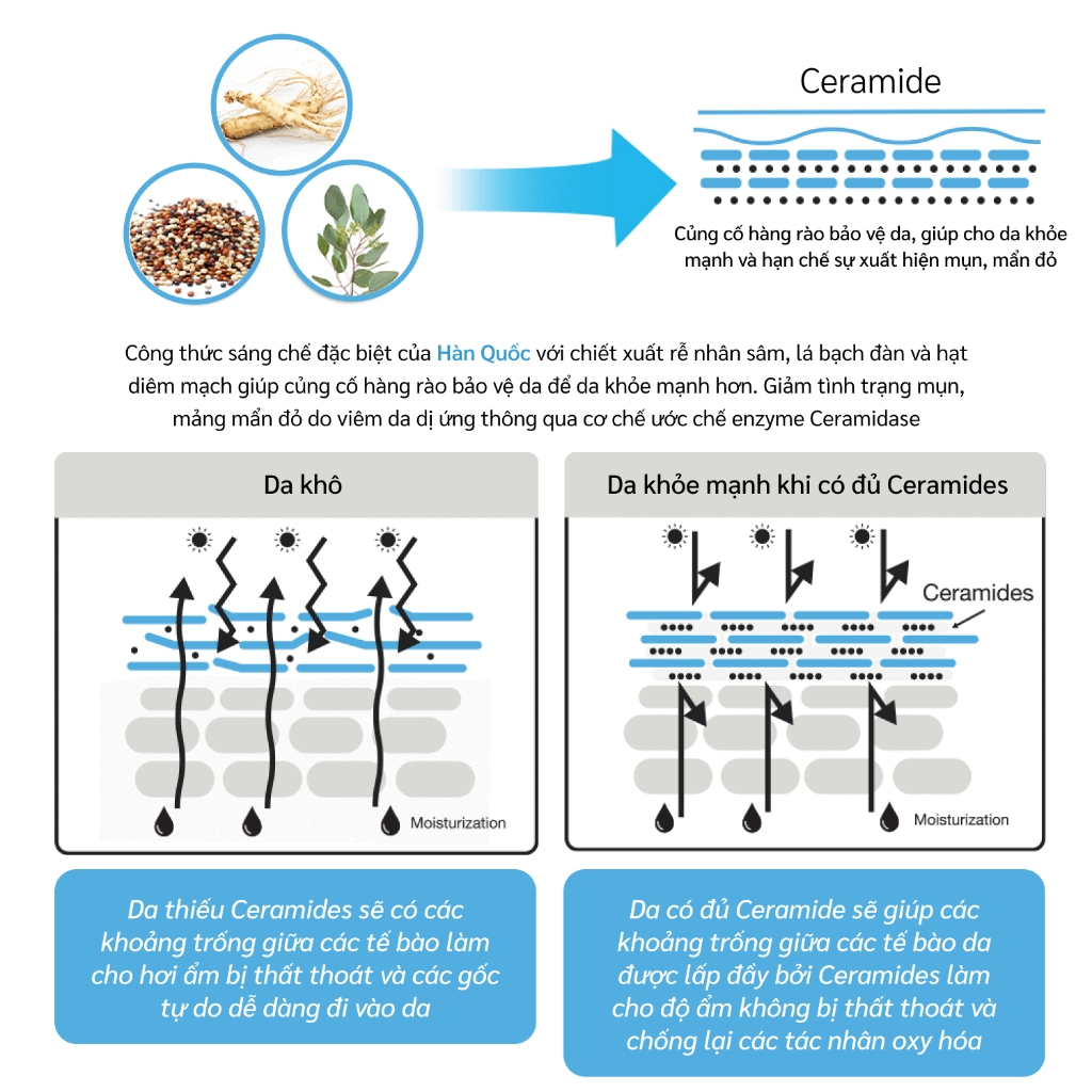 - Quinoa Seed Extract, Eucalyptus Globulus Leaf Extract, Panax Ginseng Root Extract: Cung cấp dưỡng chất, giúp da khỏe mạnh và tăng cường sức đề kháng tự nhiên.
